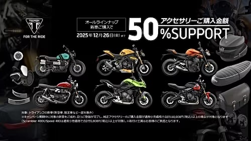 (対象外車両:Scrambler400XC、Tiger900限定車、Speed Triple1200RX、他NEWモデル等 )