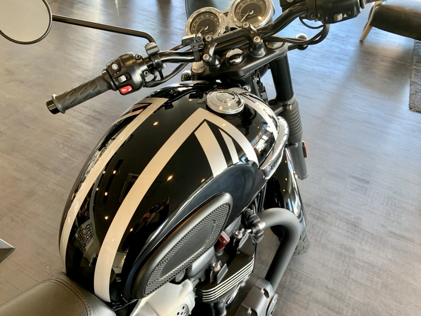 トライアンフ水戸オリジナルカスタム、ユニオンジャックを施したタンクカラーリングを大変気に入って下さいました😊