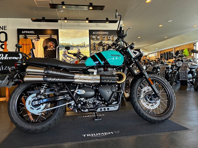 トライアンフスクランブラーを象徴するシルエットにクリーンなボディラインと堅牢な佇まい!