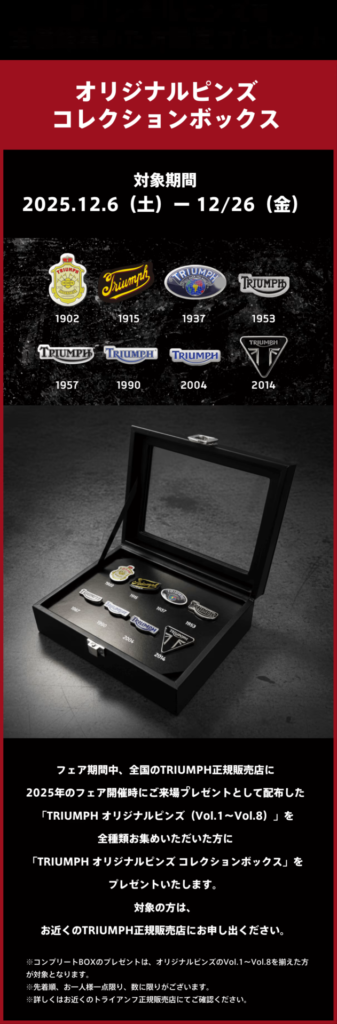 「TRIUMPH オリジナルピンズ Vol.8」をプレゼント🎁✨✨