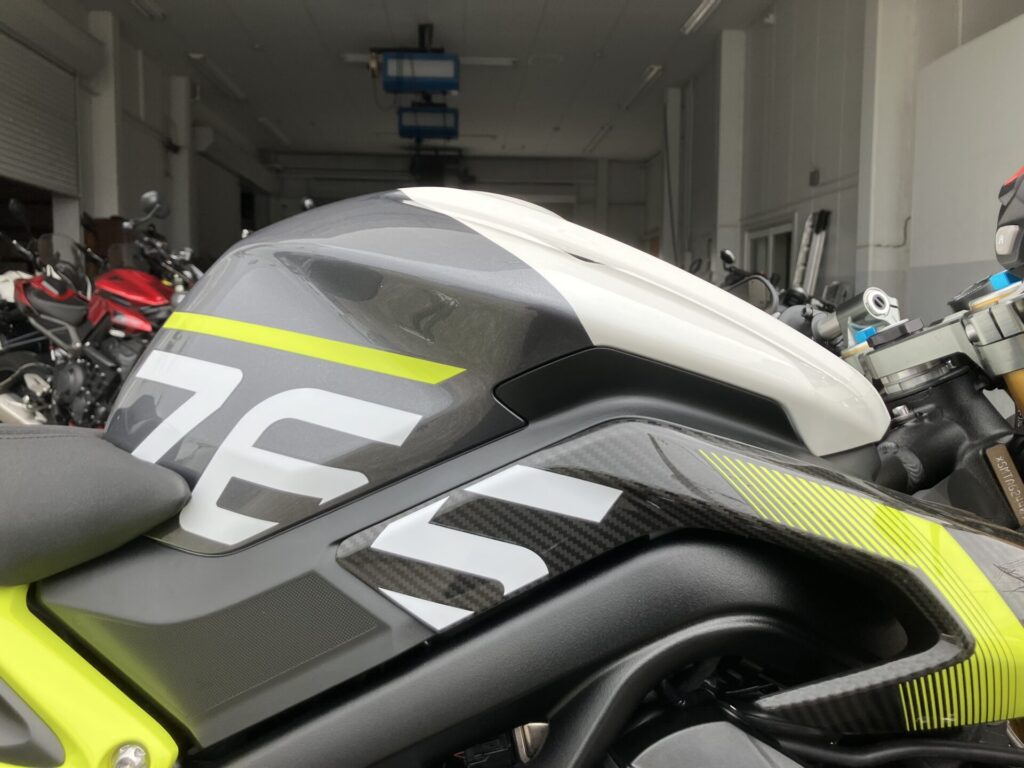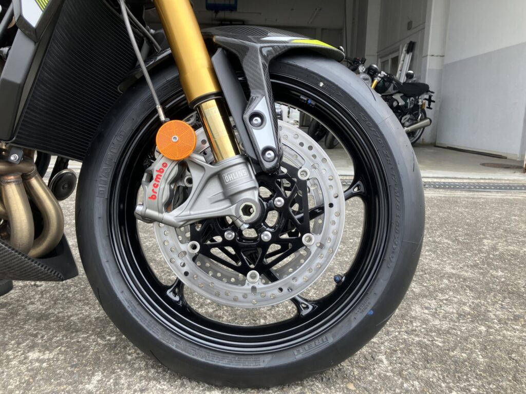 | フロントブレーキ | 10 mm フローティングダブルディスク、Brembo Stylema 4ピストンラジアルモノブロックキャリパー、OCABS、Brembo MCS ラジアルマスターシリンダー |