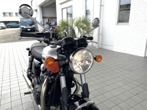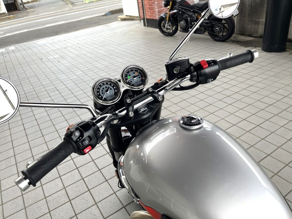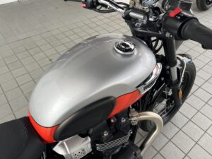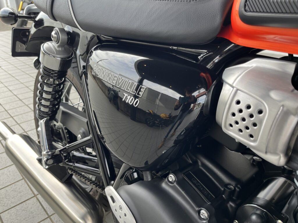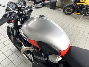 ボンネビルT100の中古車です。カラーはアルミニウムシルバー/バハオレンジです!