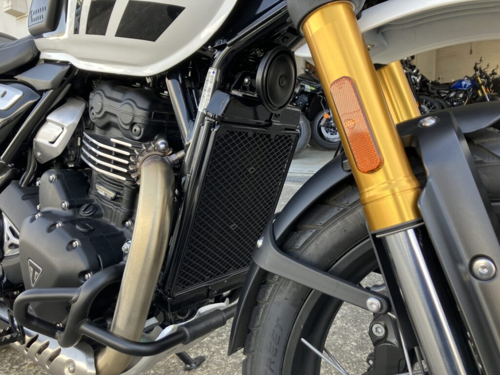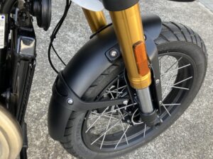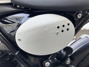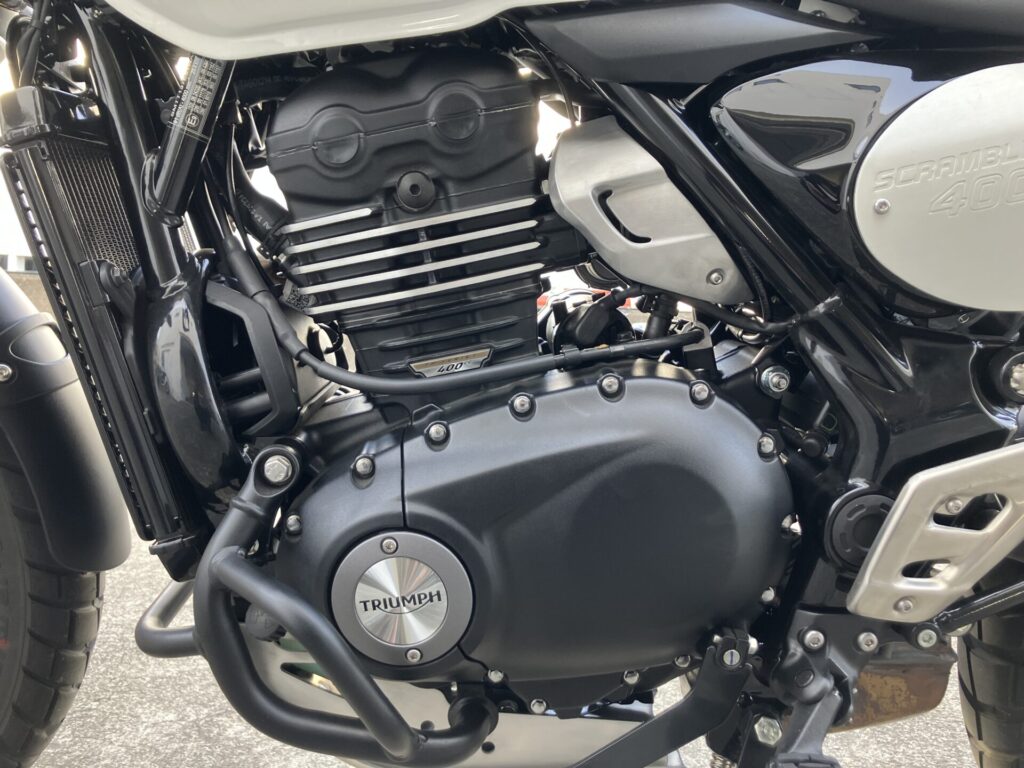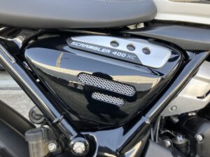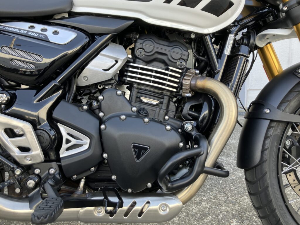 スクランブラー400XCは「400X」をベースに、アルミ製チューブレススポークホイール、アップフェンダー、専用フライスクリーン、ヘッドライトグリルなどの特別装備で、オフロードスタイルを強化したモデルとなっております。